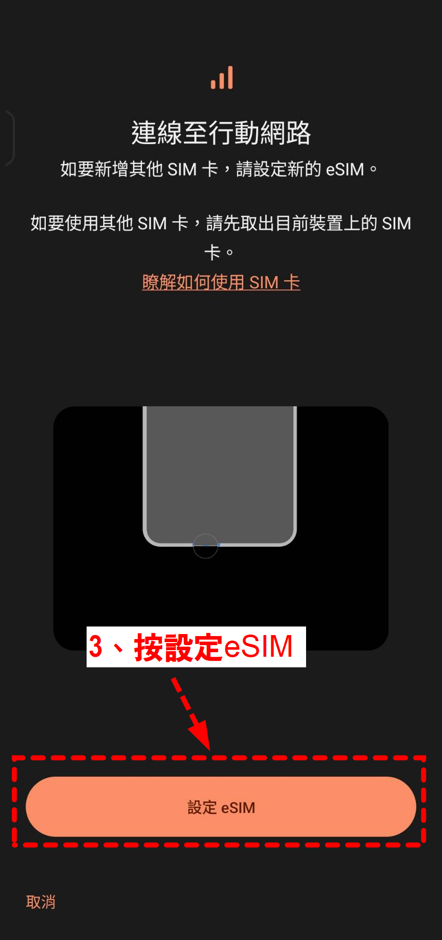 連上穩定 Wi‑Fi。確認手機支援 eSIM 且為非鎖機(Unlocked)版本。