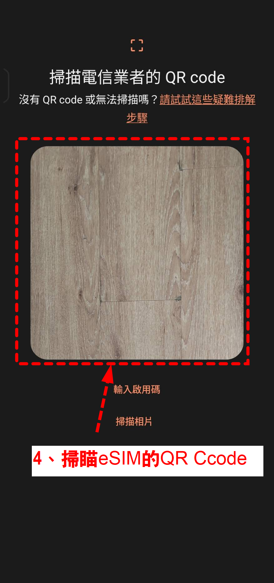 「設定」→「連接」→「SIM 管理器」→「新增 eSIM」→「掃描 QR Code」。